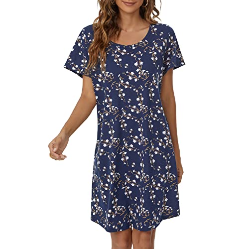 Tugege Women's Nightgowns Short Sleeve Sleepshirts Sleepwear Casual Print Pajama Dress 6