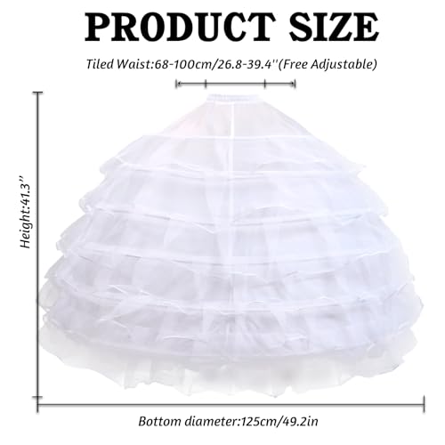 • ♥6 Hoop Petticoat Size: Elastic High Waist 26.8-39.4inches(68-100cm),Length 41.3nches (104cm), Bottom Width (Diameter)- 49.2 inches(125 cm), Fit Size 2 to Size 18.