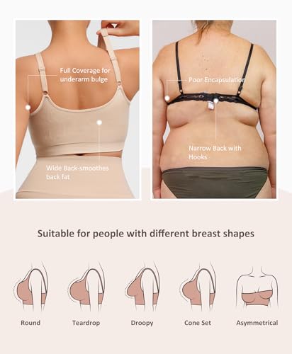 • "WIDE" DESIGN: Our wireless bra boasts widened, adjustable shoulder straps designed to alleviate pressure on the shoulders and adjust to a comfortable position. The expansive back design enhances overall stability while reducing strain on the back. Additionally, the wide elastic underband offers natural support, ensuring a consistently comfortable fit throughout the day.