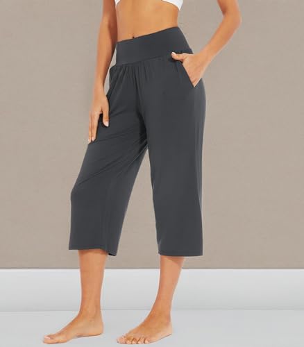 HOT ! WiWi Viscose from Bamboo Soft Capri Yoga Loose Pants for Women High Waisted Comfy Pjs Capris Lounge Pajama Bottoms S-XXL