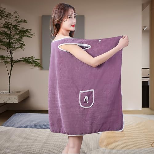More information about Bathrobes Wearable Quick-Dry Shower Wrap for Women Soft Absorbent Towel Dress with Pocket Adjustable Spa Bathrobe Travel-Friendly Bath Wrap