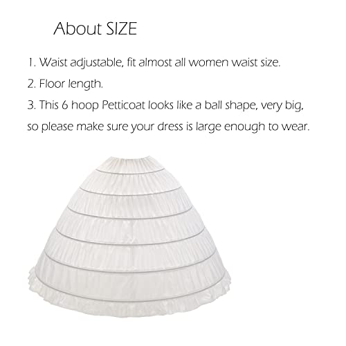 Women 6 Hoop Crinoline Petticoat Underskirt for Quinceanera Dress Wedding Gown PPT360 White 6