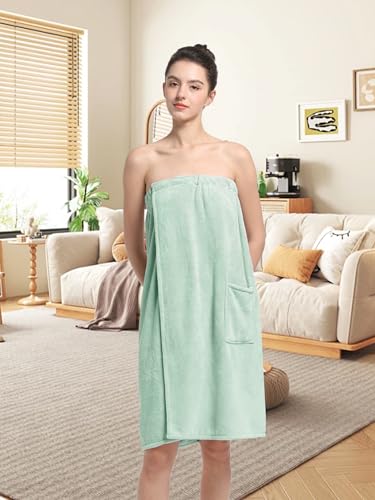 Women'S Soft Wrap Towel Full Length,Bath Robe After Shower Female Plush Long,Spa Bathrobes Lightweight With Pockets (US, Alpha, One Size, Regular, Regular, Vert) 6