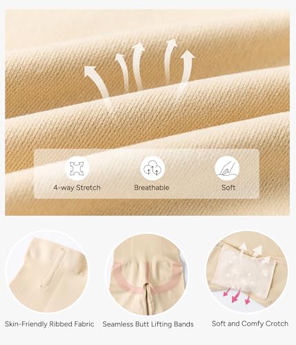 • UNMATCHED COMFORT & ELASTICITY: Indulge in luxury with our tummy control butt lifting shapewear, crafted from a blend of 86% nylon and 14% spandex. this seamless shapewear for women tummy control provides gentle compression to smooth your midsection while allowing your skin to breathe-experience a second skin sensation with a seamless and natural look. The cotton crotch of high waisted tummy control shapewear offers a soft and flattering fit, eliminating the need for additional underwear.