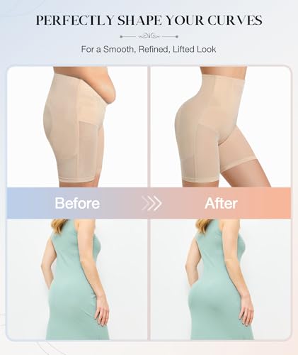 • [SMOOTH THIGHS SLIMMER]-Designed with a flattering shorts cut, tummy control shapewear shorts is not only a thigh-smoothing layer but prevents inner-thigh chafing. It slims and tightens you legs, creating a toned, polished look, while providing full coverage as the perfect slip shorts for all kinds of dresses, ensuring privacy and a smooth fit.