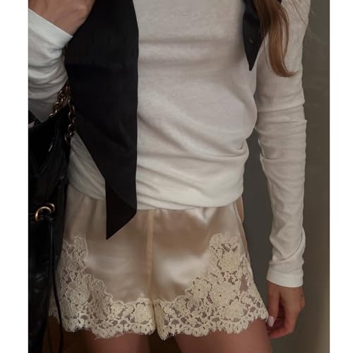 • Soft Fabric: Women's silk satin lace patchwork shorts are made of high-quality 5% cotton and 95% elastane; Soft and skin friendly, comfortable and breathable, suitable for spring and summer wear