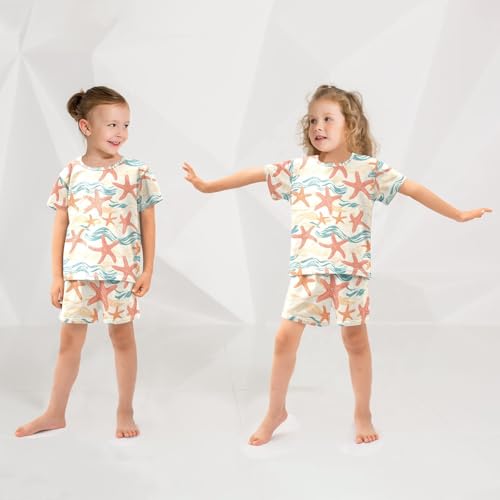 ALAZA Red Starfish Cartoon Pajamas Set Short Sleeve Cotton Sleepwear Summer Pjs 2 Piece 5-14Y 6