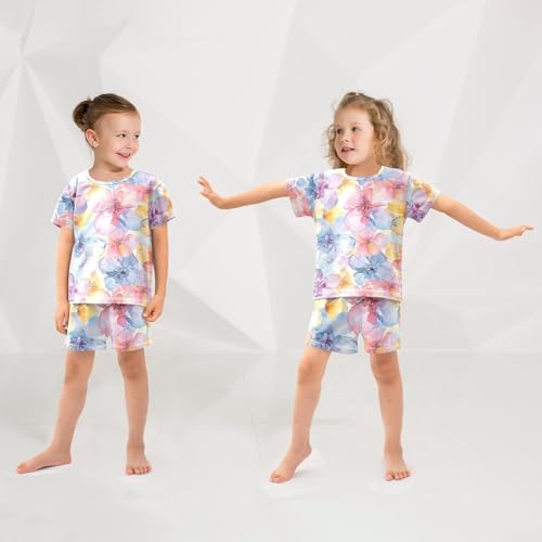 ALAZA Beautiful Flower Watercolor Floral Pajamas Short Sleeve 2 Piece Sleepwear Top and Bottom Pajama Set Unisex 2