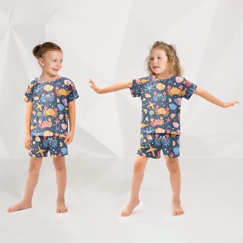 ALAZA Colorful Crab Seashell Starfish Blue Pajamas Short Sleeve 2 Piece Sleepwear Top and Bottom Pajama Set Unisex 6