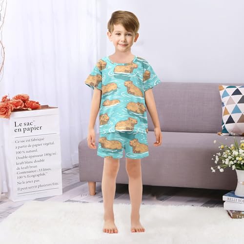 ALAZA Capybaras Blue Pajamas Short Sleeve 2 Piece Sleepwear Top and Bottom Pajama Set Unisex 6