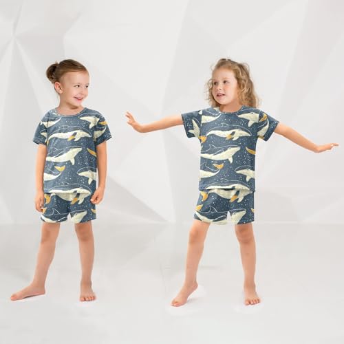 ALAZA Whale Starry Star Pajamas Set Short Sleeve Cotton Sleepwear Summer Pjs 2 Piece 5-14Y 2
