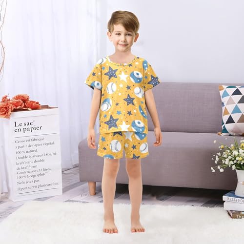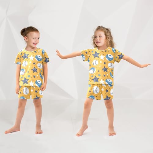 ALAZA Baseball Star Yellow Pajamas Set Short Sleeve Cotton Sleepwear Summer Pjs 2 Piece 5-14Y 6