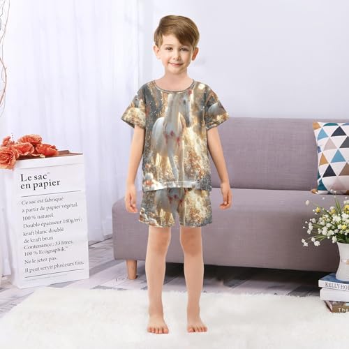 ALAZA White Horse Winter Landscape Pajamas Set Short Sleeve Cotton Sleepwear Summer Pjs 2 Piece 5-14Y 5