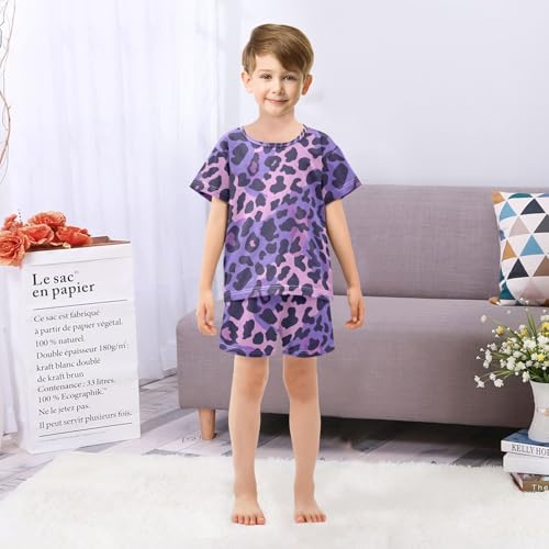 ALAZA Leopard Animal Print Pajamas Short Sleeve 2 Piece Sleepwear Top and Bottom Pajama Set Unisex 3