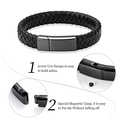 shajwo Cremation Jewelry Urn Bracelet for Ashes for Women Men Keepsake Memorial Cuff Bangle Braided Leather Wristband Bracelet 6