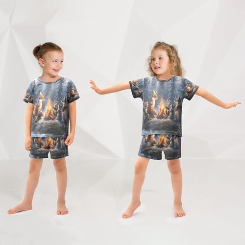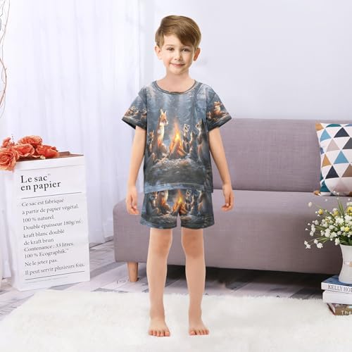 ALAZA Fox Raccoon Animal Winter Pajamas Set Short Sleeve Cotton Sleepwear Summer Pjs 2 Piece 5-14Y 2