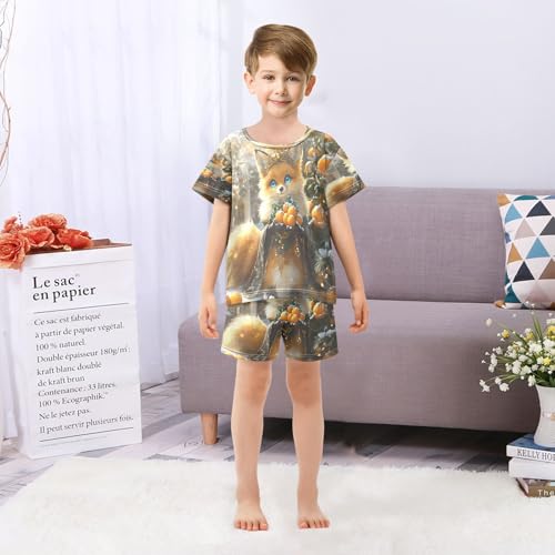 ALAZA Fox with Crown Pajamas Set Short Sleeve Cotton Sleepwear Summer Pjs 2 Piece 5-14Y 6