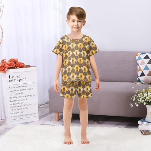 ALAZA Brown Yellow Bee Pajamas Set Short Sleeve Cotton Sleepwear Summer Pjs 2 Piece 5-14Y 2