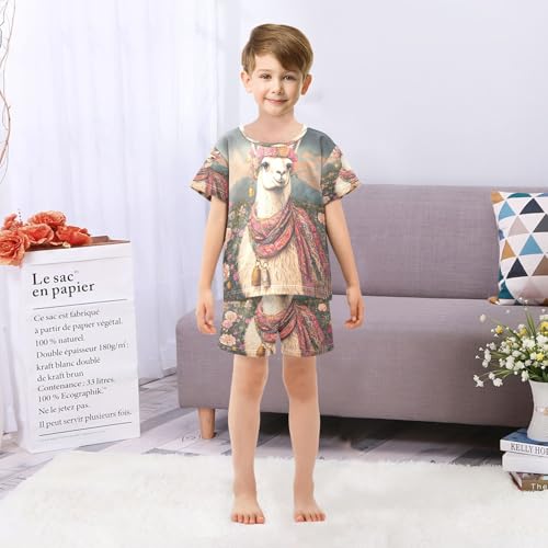 ALAZA Funny Llama Flower Blossom Pajamas Set Short Sleeve Cotton Sleepwear Summer Pjs 2 Piece 5-14Y 6