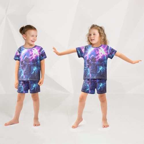 ALAZA Fantasy Magic Sugar Skull Pajamas Set Short Sleeve Cotton Sleepwear Summer Pjs 2 Piece 5-14Y 6