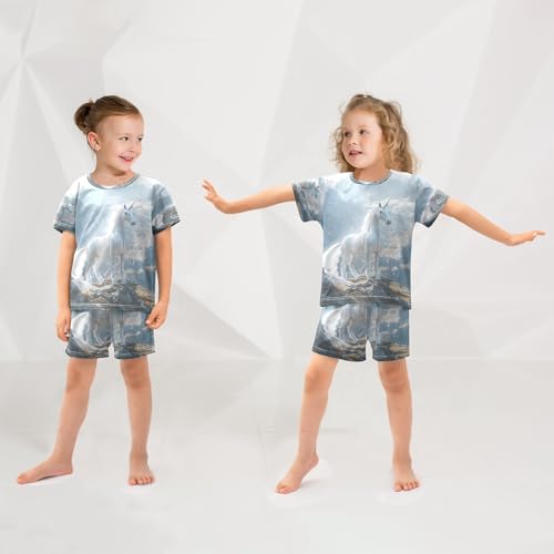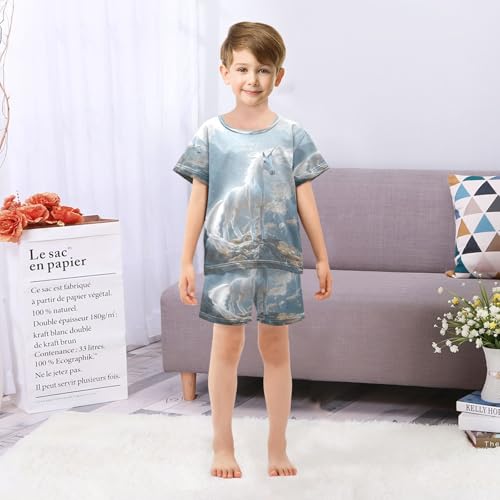 ALAZA White Horse Landscape Mountain Pajamas Set Short Sleeve Cotton Sleepwear Summer Pjs 2 Piece 5-14Y 6