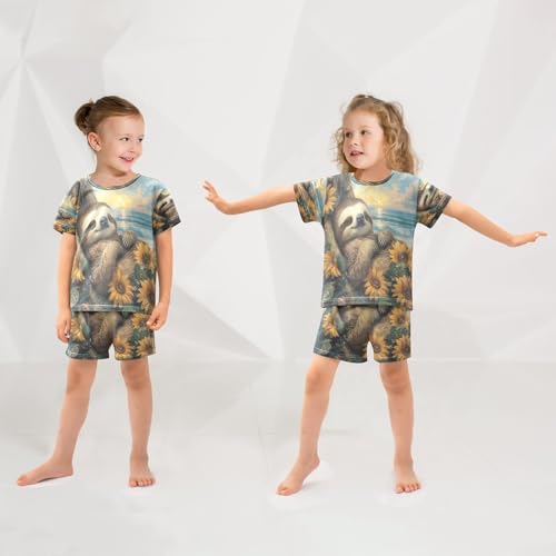 ALAZA Sloth Ocean Beach Sunflower Pajamas Set Short Sleeve Cotton Sleepwear Summer Pjs 2 Piece 5-14Y 5