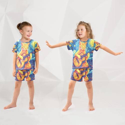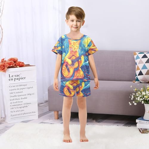ALAZA Funny Horse Galaxy Nebula Star Animal Pajamas Set Short Sleeve Cotton Sleepwear Summer Pjs 2 Piece 5-14Y 6