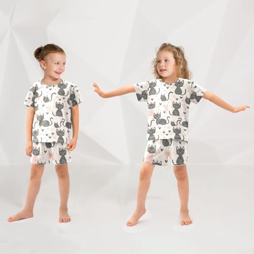 ALAZA Cat Kitten Love Heart Pajamas Short Sleeve 2 Piece Sleepwear Top and Bottom Pajama Set Unisex 6