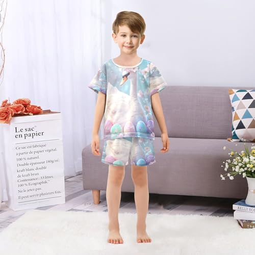 HOT ! ALAZA Easter Duck Egg Flower Floral Pajamas Set Short Sleeve Cotton Sleepwear Summer Pjs 2 Piece 5-14Y