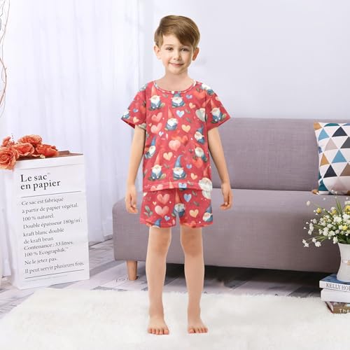 ALAZA Gnome Love Heart Christmas Pajamas Set Short Sleeve Cotton Sleepwear Summer Pjs 2 Piece 5-14Y 6