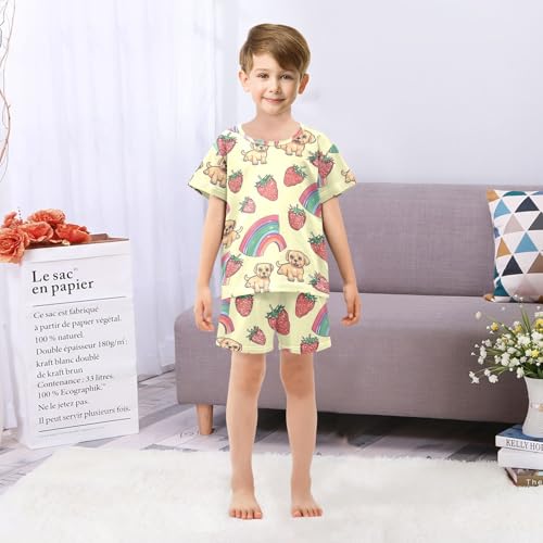 ALAZA Strawberry Puppy Dog Rainbow Yellow Pajamas Short Sleeve 2 Piece Sleepwear Top and Bottom Pajama Set Unisex 6