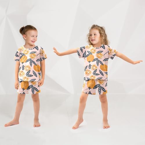 ALAZA Orange Fruit Leaf Pajamas Short Sleeve 2 Piece Sleepwear Top and Bottom Pajama Set Unisex 2