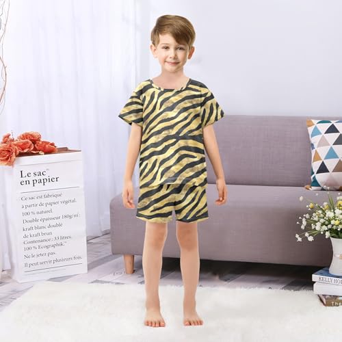 ALAZA Tiger Print Striped Yellow Black Pajamas Set Short Sleeve Cotton Sleepwear Summer Pjs 2 Piece 5-14Y 1