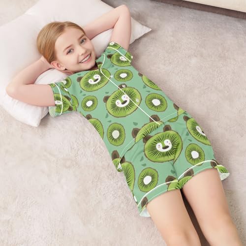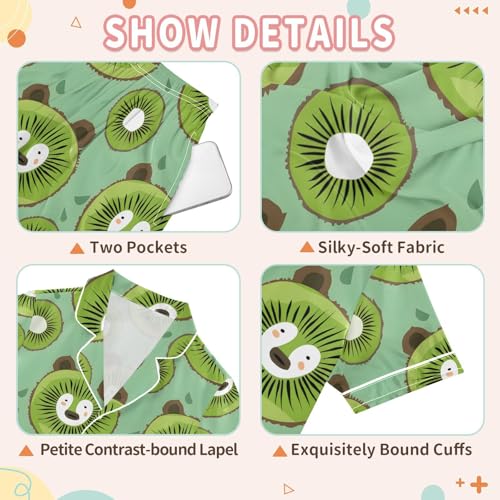 ALAZA Bear Kiwi Slice Pajamas Satin Pajama Set Short Sleeve Button Down Sleepwear 3