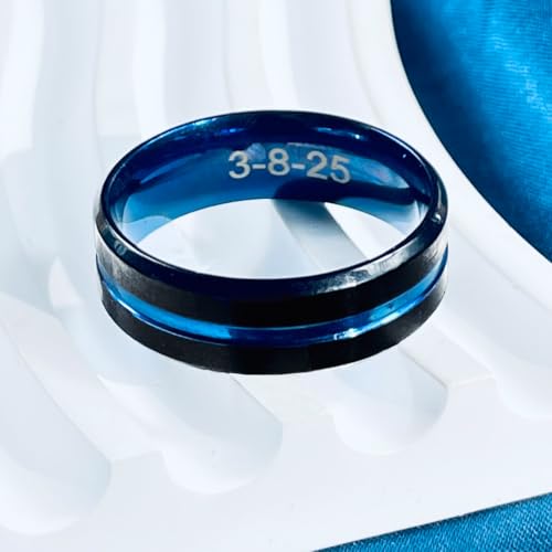 Personalized Promise Rings for Couples Matching Wedding Rings Set for Him and Her Blue Stainless Steel Engagement Rings 6