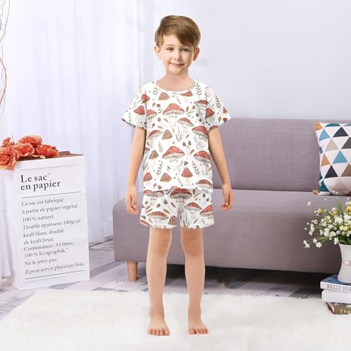 ALAZA Red Mushroom Leaf White Pajamas Short Sleeve 2 Piece Sleepwear Top and Bottom Pajama Set Unisex 6