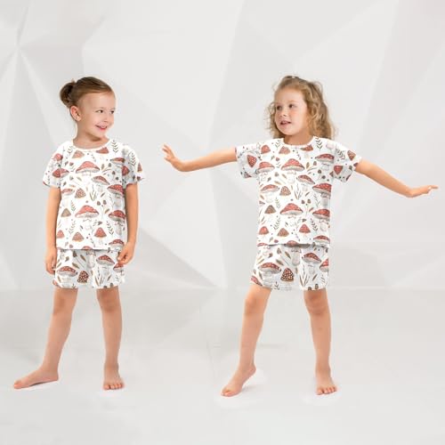 ALAZA Red Mushroom Leaf White Pajamas Short Sleeve 2 Piece Sleepwear Top and Bottom Pajama Set Unisex 2