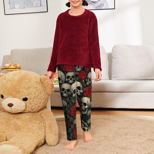 Pajama Pants Pajama Bottoms with Elastic Waistband Sleepwear Lounge Pants, Skull Rose Flowers 1