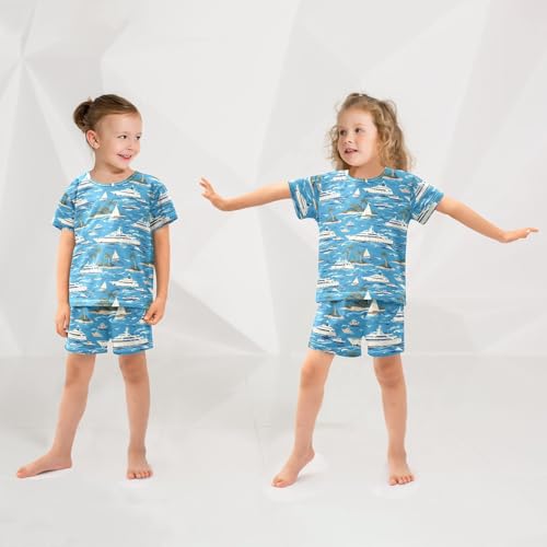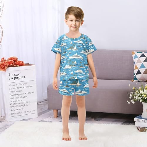 ALAZA Tropical Ship Ocean Sea Pajamas Short Sleeve 2 Piece Sleepwear Top and Bottom Pajama Set Unisex 6