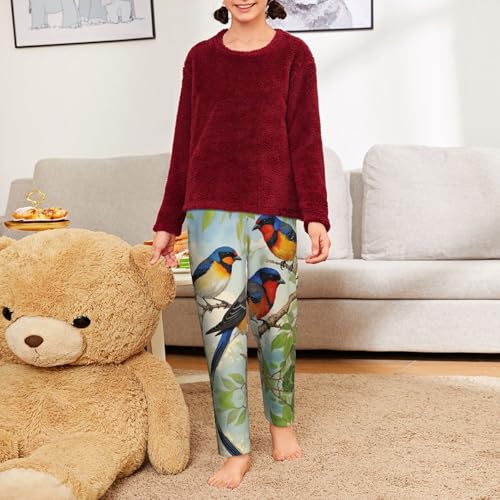 Pajama Pants Pajama Bottoms with Elastic Waistband Sleepwear Lounge PantsColorful Birds Branches Leaf 3