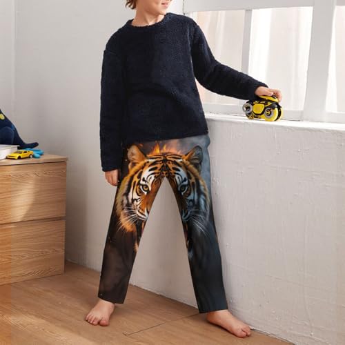 Pajama Pants Pajama Bottoms with Elastic Waistband Sleepwear Lounge PantsAnimal Fire Tiger 2