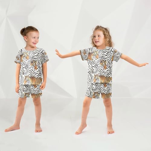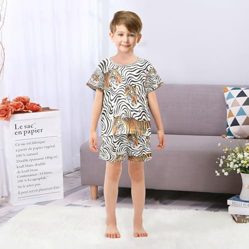 senya Short Sleeve Pajamas Sets Summer Cotton Sleepwear Tigers and Stripe 2
