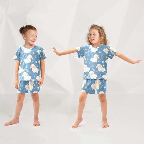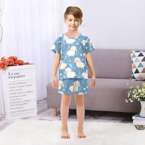 ALAZA Cartoon Animals Sheep Blossom Pajamas Short Sleeve 2 Piece Sleepwear Top and Bottom Pajama Set Unisex 2