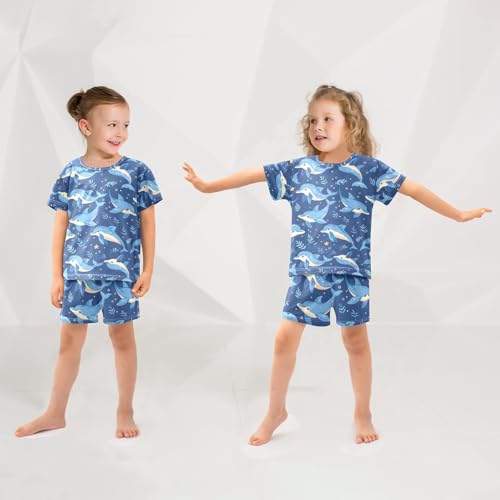 ALAZA Cartoon Dolphin Print Blue Pajamas Short Sleeve 2 Piece Sleepwear Top and Bottom Pajama Set Unisex 6