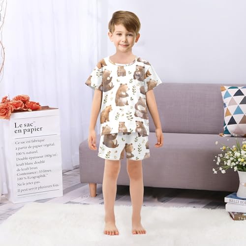 ALAZA Bear Leaf Animal Pajamas Short Sleeve 2 Piece Sleepwear Top and Bottom Pajama Set Unisex 6