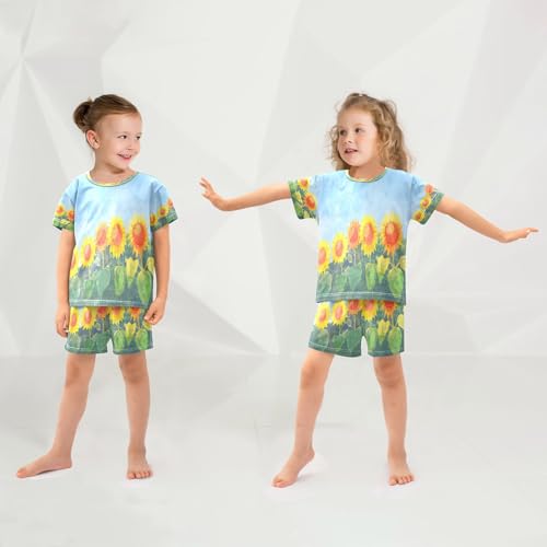 senya Short Sleeve Pajamas Sets Summer Cotton Sleepwear Watercolour Sunflowers 1