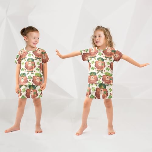 ALAZA Lion Clover Leaf Cartoon Pajamas Short Sleeve 2 Piece Sleepwear Top and Bottom Pajama Set Unisex 2