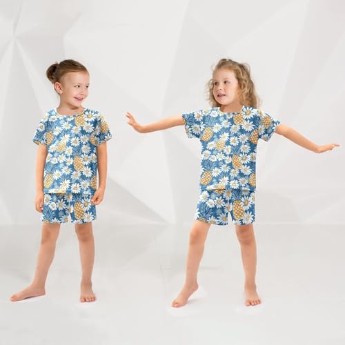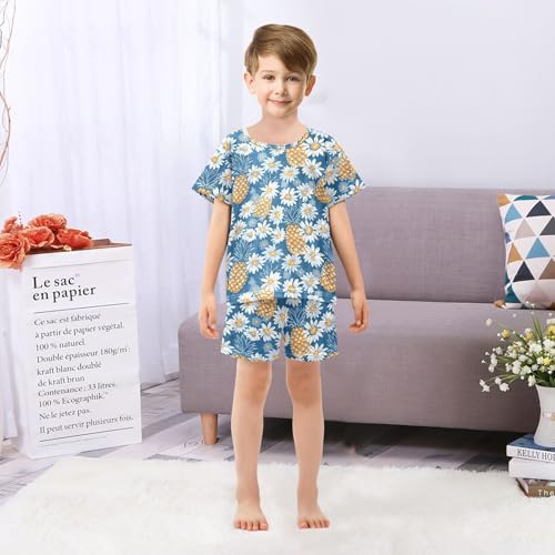 ALAZA Daisy Flowers Pineapples Blue Pajama Set Short Sleeve Sleepwear Soft Lounge Nightwear 1