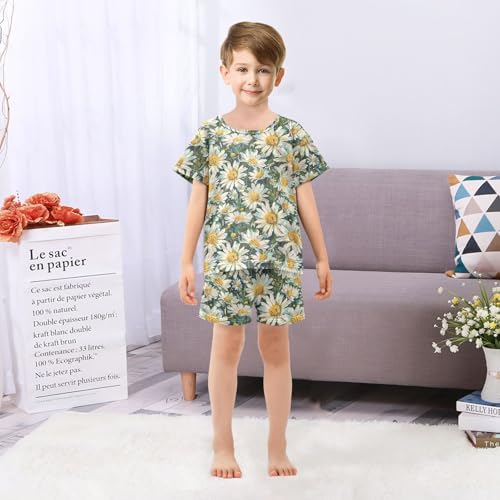 ALAZA Daisy Flowers Green Pajama Set Short Sleeve Sleepwear Soft Lounge Nightwear 1