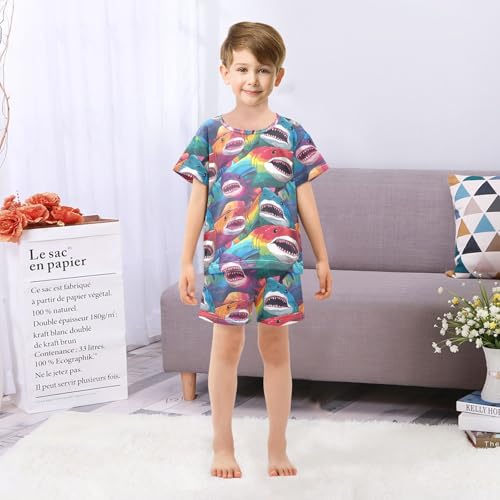 ALAZA Rainbow Color Sharks Pajama Set Short Sleeve Sleepwear Soft Lounge Nightwear 1